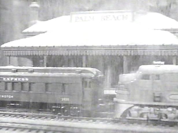 Just before the end credits roll, we see a real train trip and watch Robert Mitchum take off on his new life adventure, but not alone. Just as at the beginning, the camera pulls back and the train cleverly becomes a toy again on a new train setup with tiny palm trees of his California destination. It’s like “Holiday Affair Meets Gumby.”